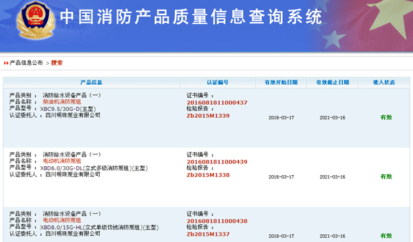 祝賀我司消防供水裝備取得國家CCCF強制認證!