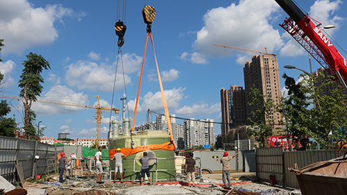 我司優(yōu)質(zhì)一體化預制泵華陽(yáng)地鐵5號線(xiàn)下穿雨水泵站運輸及吊裝現場(chǎng)?。?/div>