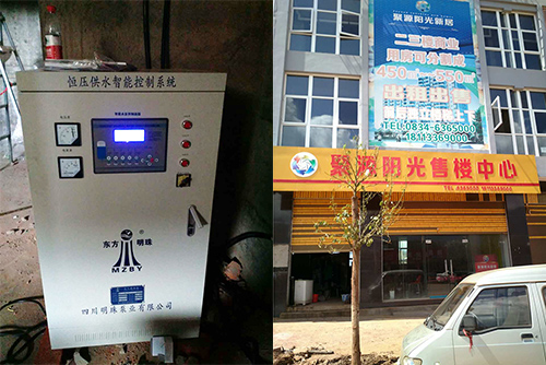 我司優(yōu)質(zhì)無(wú)負壓變頻供水設備應用于售樓中心地下室供水正常運行現場(chǎng)!