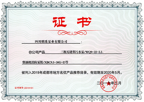 恭賀我司榮獲2019成都市地方名優(yōu)產(chǎn)品推薦目錄證書(shū)?。?!